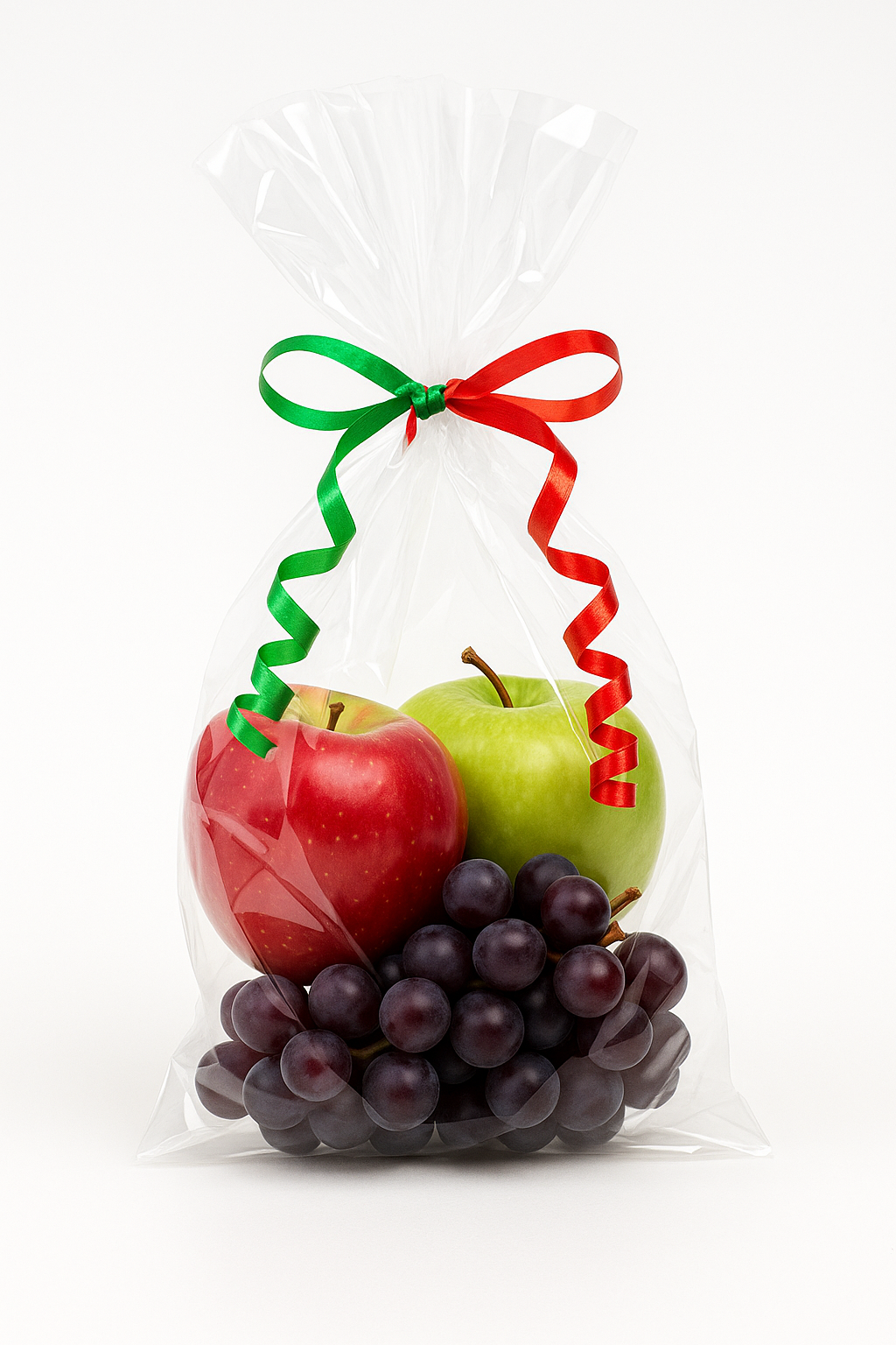 Dos manzanas grandes (roja y verde) + 250 g de uvas moradas. Un combo navideño colorido, elegante y perfecto para eventos, centros educativos y empresas. 🎄🍏🍇